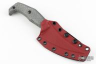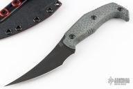 This Yummy by Bastinelli Knives features a black blade with a mortis tang construction, .156" Blade Stock and 1.077" Blade Depth.  The handle has black canvas micarta scales. Includes original box, papers and kydex sheath. Has a couple light sheath scuffs, otherwise excellent condition.