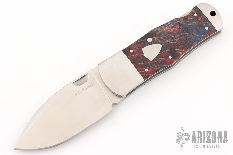 "I was born in Eudora, Arkansas, in the extreme southeast corner. I have been designing knives almost since I could first hold a pencil. When I was nine, my grandfather helped me make my first knife. It was a knife that only a mother could love. But I only improved from there. I made knives for fun until the early 1960s when I started selling them as a business. I have founded the oldest mail order knife business (1964), the oldest knife collectors club (1969-1970), and the oldest after-market knife business (1968). I've had a wonderful fifty plus years in this business. Stage by stage we have outgrown our quarters, to the point that I feel like a chambered nautilus. I moved from my kitchen table to a small building on my farm (1966), and then moved again to a larger but still small building in Springdale (1971). I bought the property and doubled the office space (1974), then in 1995, built a fine new 8,000 sq. ft. building. Very quickly, that space was filled. In March of 2002, we moved into new facilities located on Interstate 49, just up the road from our long-time location in Springdale, Arkansas. In November of 1988, my wife Goldie joined the business. She began by using her art background to produce the best catalog we had ever mailed. We mailed ten times as many catalogs as we had ever mailed before. Every year since 1988, our catalogs have increased in quality, as well as the number mailed. It took Goldie about two years to learn everything that I had learned in a lifetime of designing and making knives, then learning how to market them. By mid-1990, Goldie had assumed more and more responsibility, to the point that she was actually running the company. She is now the president and chief executive officer of this company and runs it better than I ever have, which accounts for our growth. Goldie has now been in the knife business for decades, and is considered an authority on knives. In June 2014 she became the first woman accepted into the Cutlery Hall of Fame, which also made us the first couple to have this honor together. There are now almost 40 of us who work to produce all those catalogs to help you acquire that perfectly suited knife. I design knives, work with knifemakers and with the companies who make the great production knives which we sell. I write copy for the brochures and catalogs, while Goldie does the tough day-to-day grind of running an ever-growing business. Over the years I have had the opportunity to work with, and know as my friends, the great knifemakers of the 20th Century; men such as R. W. (Bob) Loveless, R. L. (Bob Dozier), D'Alton Holder, Jess Horn, Ron Lake, Buster Warenski and D. E. (Ed) Henry. Hundreds of very fine knifemakers have blessed me with their friendship, as have thousands of knife collectors. I have been involved with guns and knives most of my life and my life has been much fuller because of that." Founder - A. G. Russell Knives, Inc. (1964), Co-Founder and Honorary President - Knifemakers Guild (1970), President - The Knife Collectors Club (1970), First Honoree - Knife Digest Cutlery Hall of Fame (1974), Blade Magazine Cutlery Hall of Fame (1988), Regent - The American Knife and Tool Institute. A.G. Russell passed away in 2018.