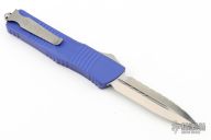 This Combat Troodon OTF automatic features a satin finish D/E blade with a fully serrated edge and a purple aluminum frame. Stainless steel clip. Glass breaker. Serial number of 15458 and dated 07/2015. Comes with original box. Excellent condition.
