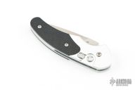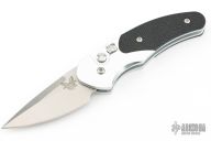 This 3150 Impel Automatic by Benchmade features a drop point blade with swedge. The handle is comprised of an aluminum frame with black G10 overlays. Push button and sliding safety on "A" side of handle. Comes with Benchmade drawstring pouch. Has scuffs and scratches, good condition. No clip attached or included.