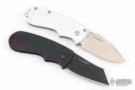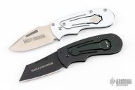 Both have holes for clips, but no clips attached. Both come with Benchmade drawstring pouches. Have a couple light scuffs and scratches excellent condition otherwise.