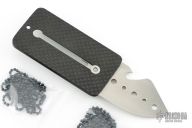 This Slyde-R by John Kubasek was the prototype for the Boker Slyde-R. It has a chisel ground satin finished blade with bottle opener on the spine. The handle is carbon fiber. Has a springloaded button to open and close the knife. Comes with a ball chain. Excellent condition.