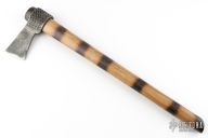 This Raxp Tomahawk by Kerick Kemper is hand- forged from a horse shoeing rasp using only hand powered tooling. Lite and fast, perfect for light camp work and balanced beautifully for throwing. Has a flamed hickory handle. Excellent condition.