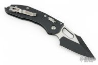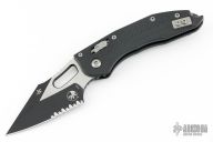 The Microtech Stitch Ram-Lok is Microtech's exciting new take on the beloved Stitch Automatic. It boasts Microtech's exclusive Bohler M390MK steel blade, offering improved edge retention over standard Bohler M390 steel. The knife employs the Ram-Lok, not too dissimilar from a crossbar lock, for tight blade lock-up, easy one-handed closing, and tremendous strength; to disengage the lock, simply pull away from the blade on the X-Buttons. The handle features lightweight scales over steel liners with a titanium backspacer. Take on any cutting task with the manual Stitch!