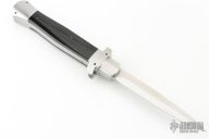 "When I was 9 years old my Dad gave me a 6 inch Rizutto with a broken spring. I can remember trying to stick a coat hanger wire into it trying to fix it but to no avail. I later took the blade out and stuck it into one of those Taiwan switchblade combs because I wanted it to work so bad but I ended up destroying both of them in the process. When I was a kid I loved going to flea markets and gun shows looking for switchblades and butterfly knives that I've always liked. Even now as an adult I love them all the more. I like most all knives but have always had a thing for the classy Italian stiletto's. Its been a blast to meet up with other collector's on the internet and also learning the mechanics from makers like Don Hall, Arlin Walker, Bill McHenry, Reese Weiland, Jerry Rados, and George Cameron to name a few. I currently reside in Ohio where I am now a full-time knifemaker with a modest machine shop. I also restored antique stiletto's professionally for antique dealers for several years before becoming a custom knifemaker."