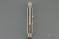This Picklock Auto by Renzo Passcotto features a tumble polished blade with unsharpened edges. The handle has mother of pearl scales with black liners, brass D-stamp liners and nickel silver bolsters. Has safety. Has some light scratches and a little blade play, otherwise excellent condition. Only 4 of these were made in Mother of Pearl. Comes with a cloth pouch.