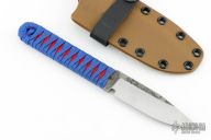 This JV-3 Kwaiken by BGM Knives features a satin finished blade with heat treat finished flats, .197" blade stock and .927" blade depth, hidden tang construction. The handle has blue/red cord wrapped grip. Comes with a kydex sheath. Excellent condition.