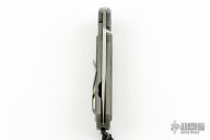 This Large Sebenza 21 by Chris Reeve Knives features a tumble finished drop point blade with single thumbstud and notched thumbrest. The handle has a bead blasted titanium frame with black canvas micarta inlays. Bead blast titanium clip, tip up carry. Comes with original box. Has some scuffs, otherwise good condition.