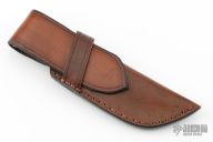 The Boye Basic is a powerful working knife for the ocean environment, designed for maximum versatility, strength, and compactness. Has a drop point blade with .256" thickness and 1.419" blade depth. Integral construction for lightness and strength. Comes with a brown leather sheath and COA. Excellent Condition.