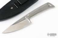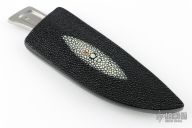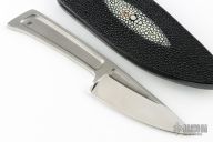 The Boye Basic is a powerful working knife for the ocean environment, designed for maximum versatility, strength, and compactness. Has a drop point blade with .256" thickness and 1.419" blade depth. Integral construction for lightness and strength. Comes with a stingray and leather sheath. Excellent Condition.