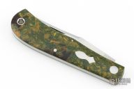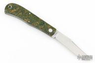 This Shadow Back Pocket by Daniel Keown features a satin finished blade with nail nick and false top edge. The handle has vintage Westinghouse rag micarta covers, stainless steel liners and spring, stainless steel pins and escutcheon. Has half-stop, flush in all positions. Excellent condition.