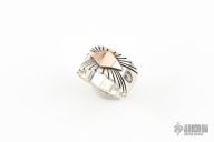 .925 Sterling Silver and 18k Rose Gold Ring - Size 11. Has some scratches, otherwise excellent condition. Has a Native American motif.