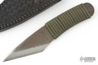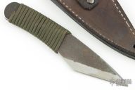 This Kiridashi is by Murray Carter, it features a hand forged laminated steel blade with hammer mark finished, .177" blade stock and 1.359" blade depth. The handle is wrapped with paracord. Includes a black leather sheath.  Excellent condition.