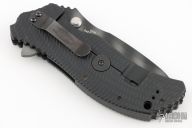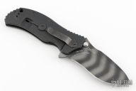 This 0303 frame-lock assisted flipper by Zero Tolerance features a recurve spear-point blade with a tiger stripe finish, stainless steel liner black G10 scale, and titanium scale with a black G-10 backspacer. Has custom skull anodizing, custom tip up titanium clip with bronzed screws. It also features the Speed-safe assisted opening system. Black stainless steel clip and lock bar stabilizer. Clip is 4-way reversible. Excellent condition. Comes with original box and papers.
