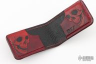 This card wallet by Bad Love Leather features red/black Shark Skin outer with red/black American Lizard inner. Excellent condition.