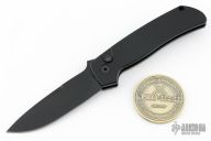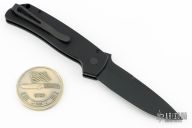 This ATCF Auto Operator by Pro-Tech features a black blade with notched thumbrest. The handle has a black aluminum frame with tip up black stainless steel clip and black hardware. Trit inlaid push button. Comes with original box, challenge coin and papers. New from maker at the 2024 CCKS.
