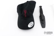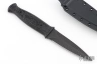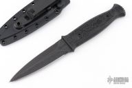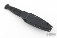 This knife features a black acid tumbled double-edged blade with a full tang construction .147" blade stock and .940" blade depth. The handle has G-10 scales. Comes with a kydex sheath with clip and a hat. Excellent Condition.