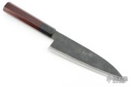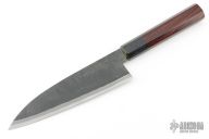 The is a long narrow kitchen knife with a thick blade made from Stainless Clad Aogami Super Steel (NAS) which is a high-carbon steel alloy with vanadium and is ground on both sides. As with all of Takeda's knives, it has a strong sharp edge. The octagon shaped wood handle is easy to hold. 160mm cutting edge, .157" blade stock and 1.663" blade depth. Brand new from maker.