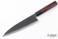The is a long narrow kitchen knife with a thick blade made from Stainless Clad Aogami Super Steel (NAS) which is a high-carbon steel alloy with vanadium and is ground on both sides. As with all of Takeda's knives, it has a strong sharp edge. The octagon shaped wood handle is easy to hold. 190mm cutting edge, .164" blade stock and 1.733" blade depth. Brand new from maker.
