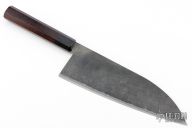 The third-generation master blacksmith Shosui Takeda was born and raised in Niimi, Okayama in Japan. After graduating from a university and working in Tokyo, he returned to his hometown to succeed his father as a blacksmith. Since 1985 he has strived and studied to produce the very best hand-forged blades and tools. His knives are forged by hand with his small staff of master smiths. Each blade holds its edge extraordinarily well and resharpens easily. All his knives have 50/50 edges and octagonal handles so they are good for either right-handed or left-handed users. His good old-fashioned hard work makes for one-of-a-kind knives.