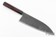 The third-generation master blacksmith Shosui Takeda was born and raised in Niimi, Okayama in Japan. After graduating from a university and working in Tokyo, he returned to his hometown to succeed his father as a blacksmith. Since 1985 he has strived and studied to produce the very best hand-forged blades and tools. His knives are forged by hand with his small staff of master smiths. Each blade holds its edge extraordinarily well and resharpens easily. All his knives have 50/50 edges and octagonal handles so they are good for either right-handed or left-handed users. His good old-fashioned hard work makes for one-of-a-kind knives.