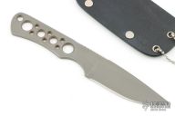 This Neck Knife from Pat and Wes Crawford features a bead blast finishd blade with notched thumbrest, .121" blade stock and .909" blade depth. Handle has been drilled to reduce weight for ease of carry. Includes kydex sheath. Has some scuffs and scratches, excellent condition otherwise.