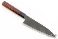 The blade is Stainless Clad Aogami Super Steel (NAS) which is a high-carbon steel alloy with vanadium. As with all of Takeda's knives, it has a strong sharp edge. The octagon shaped wood handle is easy to hold. 170mm cutting edge, .108" blade stock and 1.815" blade depth, hidden tang construction. Comes with original box and papers. Brand new from maker!