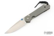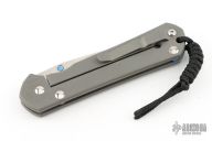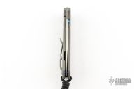 This Large Sebenza Classic 2000 by Chris Reeve Knives features a tumble finished drop point blade with single anodized thumb stud and notched thumb rest. The handle is comprised of a bead blasted titanium frame over an anodized titanium barrel spacer. Bead blasted titanium tip up clip is positioned for right hand carry. Lanyard hole and lanyard in pommel. Includes original box and maker's card dated May 17, 2001. Has some scuffs, otherwise excellent condition.
