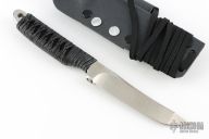 This Tanto by Dawson Knives features a satin polished and tanto blade, .259" blade stock and .826" blade depth, hidden tang construction. The handle has stingray skin under epoxied black cord wrap. Comes with a kydex sheath. Excellent Condition.