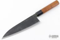 The blade is Stainless Clad Aogami Super Steel (NAS). As with all of Takeda's knives, it has a strong sharp edge. The octagon shaped wood handle is easy to hold. 190mm cutting edge, .097" blade stock and 1.979" blade depth. Comes with original box and papers. Brand new from maker.