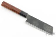 The KoBunka by Takeda is traditionally used as a paring knife or all-purpose small kitchen knife. The blade is Stainless Clad Aogami Super Steel (NAS). As with all of Takeda's knives, it has a strong sharp edge. The octagon shaped wood handle is easy to hold. 120mm cutting edge, .085" blade stock and 1.490" blade depth. Comes with original box. Brand new from maker.