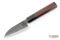The Mini Petit knife is traditionally used as a paring knife or all-purpose small kitchen knife. The blade is Stainless Clad Aogami Super Steel (NAS) which is a high-carbon steel alloy with vanadium. As with all of Takeda's knives, it has a strong sharp edge. The octagon shaped wood handle is easy to hold. 90mm cutting edge, .066" blade stock and 1.208" blade depth, hidden tang construction. Comes with original box and papers. New from maker.