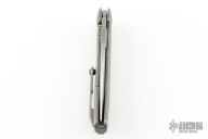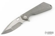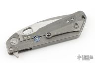 This MSG-3 by Mick Strider and Tony Marfione features a two-tone stonewashed blade with notched thumbrest and flipper. The handle has a milled and stonewashed integral titanium frame with tip up clip, clip has a ceramic ball, anodized titanium lockbar stabilizer, lanyard hole at the butt. Nice detent, lockup and blade seating. Dated 03/2016 inside backspacer. Has a couple light scuffs and scratches, great condition otherwise.