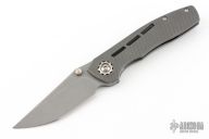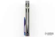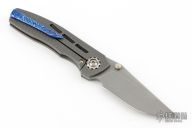 This Dukling by Kody Eutsler features a tumble finished blade with dual titanium thumbstuds. The handle has a milled, stonewashed titanium frame with Timascus backspacer and tip up clip with hidden screws. Rides on bearings, nice detent, lockup and blade seating. Comes with a zipper case and COA. Excellent condition.