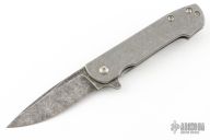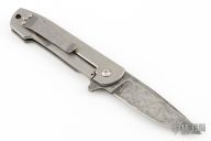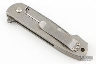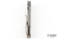 This Kumu by Defiant 7 features a dark tumble finished blade with flipper. The handle has a stonewashed titanium frame with matching backspacer and tip up clip. Rides on bearings, nice detent, lockup and blade seating. Comes with a zippered case. Excellent condition.