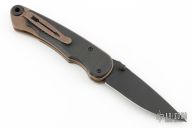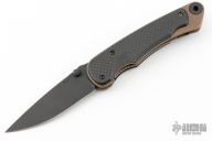 This Akribis linerlock folder by Spartan Blades features a black PVD finished drop point S35VN blade with dual thumb studs and a notched thumb rest. The handle has carbon fiber scales, sand PVD titanium liners, black G-10 backspacer and tip up sand PVD titanium clip. Has nice detent, lockup, and blade seating. Comes with a Bill's case. Has a couple light scuffs, otherwise excellent condition.