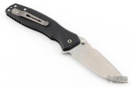 This PALLAS button lock from Spartan Blades features a tumble finished clip point S45VN blade with swedge, dual thumb studs, notched thumb rest and flipper. The handle has a milled and black anodized aluminum frame over stainless steel barrel spacers. Titanium tip up clip and lanyard hole in pommel. Comes with original box. Excellent condition.