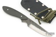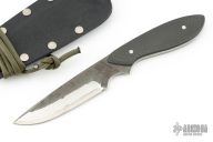This neck knife by Murray Carter features a laminated blade with polished grinds, forged finished flats and a full tang construction.  .118" Blade Stock.  .909" Blade Depth.  The handle features carbon fiber scales.  Includes a kydex sheath.  Excellent Condition.