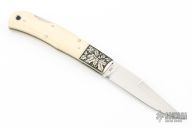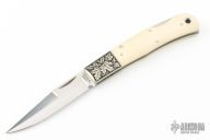 Considered a knife making legend, Jess Horn is primarily known for very high quality, top notch material custom folding knives. Jess Horn has been making knives since 1968 and, while occasionally making fixed blades, he is best known for his investor quality folders, working folders, and collectible period pieces. Jess's linerlock and slip joint folders are typically made with ATS-34 and 154CM stainless steel, and he uses a variety of natural handle materials, though favoring fossil Ivories and Stag for many of his knives. He was a longstanding voting member of the Knife Makers Guild. Jess passed away in 2016.