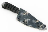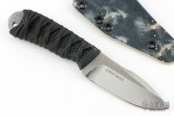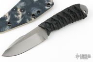 This Knife by Joe Watson features a satin finished hollow ground blade with a false top edge, .172" blade stock and 1.175" blade depth, hidden tang construction. The handle is cord wrapped over ray skin. Comes with a kydex sheath with clip. Has a couple light scuffs, excellent condition. Comes with bag, and sticker.