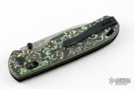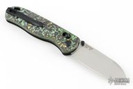 With unique patterns on the Fatcarbon handle and the handle crafted just about symmetrical to the 20CV drop point blade, the knife has a balanced aesthetic.