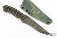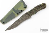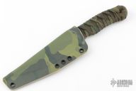 This knife by Joe Watson features a recurve acid etched blade with .153" blade stock and 1.489" blade depth, hidden tang construction with cord wrapped handle. Comes with a kydex sheath. Has some scratches on the blade, great condition otherwise.
