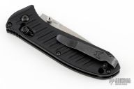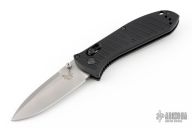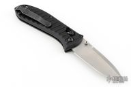This 575 Presidio II by Benchmade features a bead blasted drop point blade with swedge and dual thumb studs. The handle is comprised of black anodized and machined aluminum over black steel liners and barrel spacers. Axis lock mechanism. Black coated tip up clip is reversible for left or right hand carry. Comes with original box. Excellent condition.