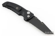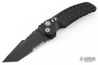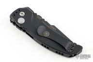 This EX-A01 by Hogue Knives is an Allen Elishewitz design, it features a black tanto partially serrated 154CM blade with notched thumbrest. The handle is black aluminum, tip up or down reversible black stainless steel clip. Has safety. Comes with original box and papers. New condition.