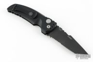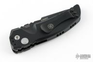 This EX-A01 by Hogue Knives is an Allen Elishewitz design, it features a black tanto partially serrated 154CM blade with notched thumbrest. The handle is black aluminum, tip up or down reversible black stainless steel clip. Has safety. Comes with original box and papers. New condition.