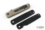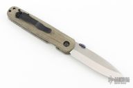 Ernie Emerson says "Symmetry, Grace, and Power. These three words describe the Emerson Model A100 knife perfectly. When I first started making knives, before “Tactical”, I was making this pattern. I liked it then just as much as I like it now. This knife became the archetype from which all of my other designs have evolved . It is the “Father” of all my tactical designs. In fact it might be the “Grandfather” of all tactical knife designs that now exist. It’s simple, it works, and it never gives up. See for yourself." This knife has a stonewashed spearpoint blade with a custom anodized titanium shamrock thumbdisc. The handle has green canvas micarta scales, titanium liners, and a tip up Emerson stainless steel clip. S/N 2200. Excellent condition. Comes with original scales and thumbdisc.