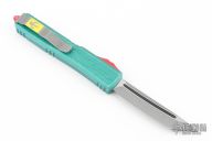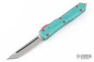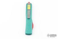 This Star Wars themed Ultratech by Microtech knives features a standard tanto blade with fullers and apocalyptic finish. The handle has a green battle worn aluminum frame with red and yellow hardware. Comes with original box and papers. Dated 07/2022 s/n 6786. Excellent condition.