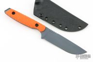 The edge features a 2.75? straight for fine work, and a razor sharp 1.75? radius to the tip for traditional blade work. Its KG Gunkote finish provides excellent abrasion, chemical and impact resistance, and the blade shape allows for much more steel mass behind the edge, which translates to a longer sharpening life and edge impact resistance. A perfect 90-degree spine, from the tip all the way to the thumb jimping, provides more surface area for hammering and ferro rod sparking.