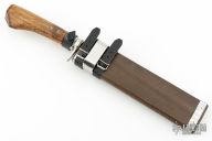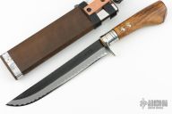 Our Gesshin Outdoor series is a result of our relationship with an extremely talented blacksmith who is focused entirely on his craft of making outdoor knives and nata (Japanese style hatchets). After meeting him some years ago, Sara and I were immediately impressed with the quality of his work. However, it was his attitude that really won us over. He's the kind of guy who smiles all day because he loves what he does so much. We initially tried to get him to make kitchen knives, but he politely refused. We decided that we loved his work so much that we would expand our collection to include the kinds of things he does best. He works primarily with blue #2 steel.
