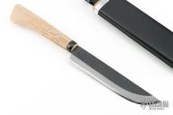Hand forged knives from the Tosa area of Shikoku Island, Japan's least populated island with a long history of smithing. Shikoku's thick forests, agriculture and fisheries have led to a local style of smithing that is characterized by rustic free forged knives and tools. Many Tosa knives are double bevel ryoba style; forged and ground symmetrically and are suitable for both right and left hand users.